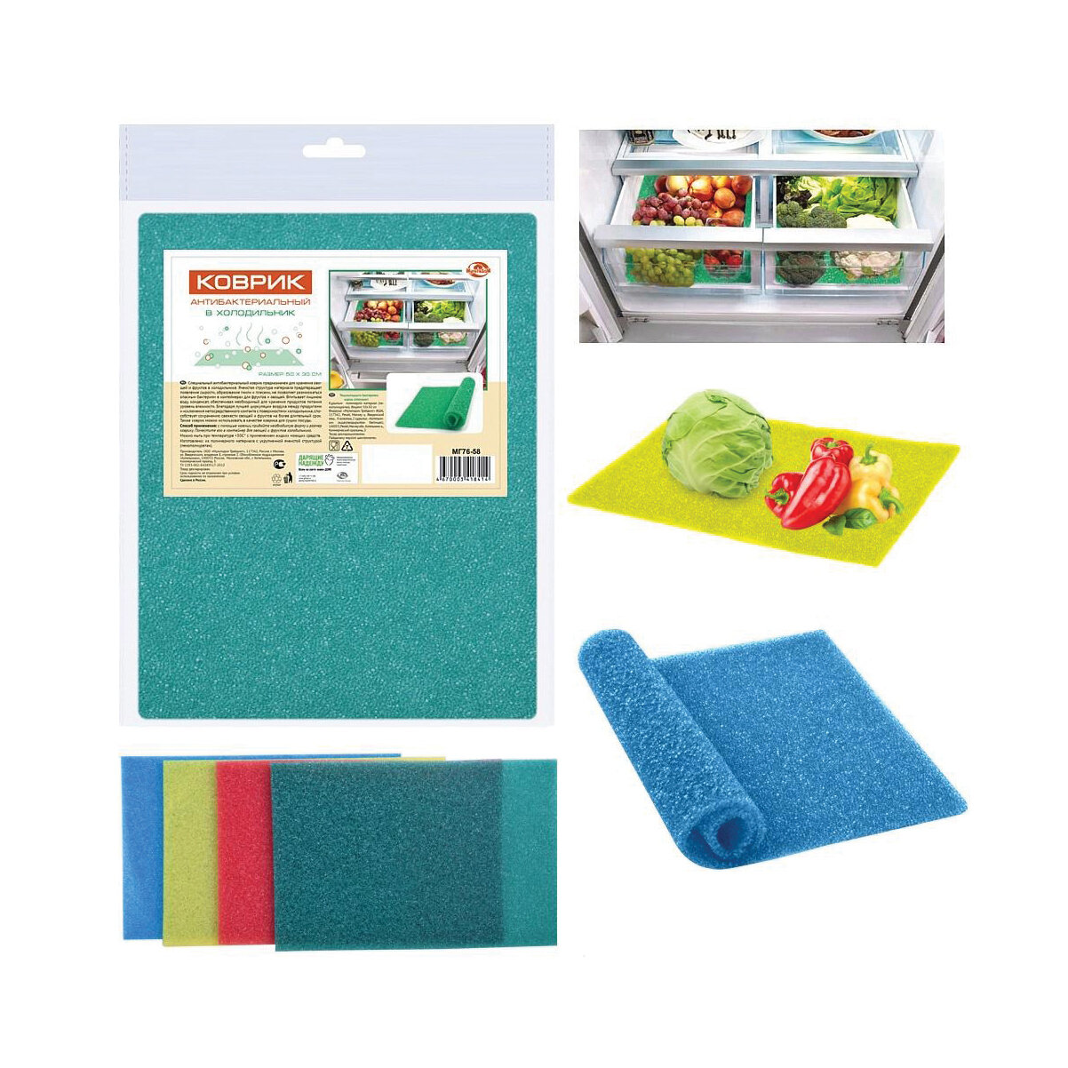 Коврик антибактериальный в холодильник 50*33см 4цв МГ76-58 (5) .