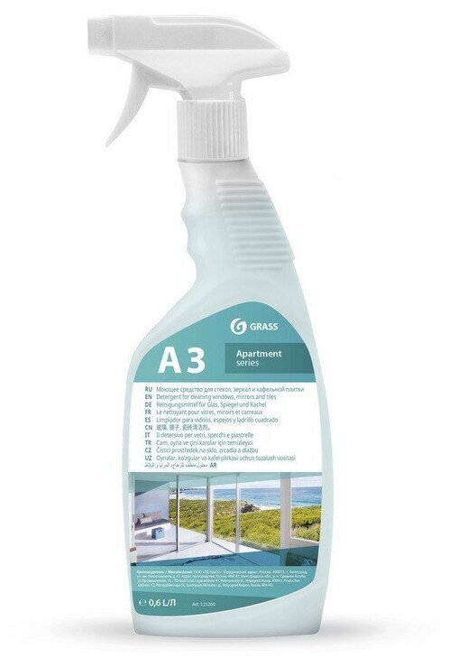 Средство моющее Grass Apartament series А3 для стекол, зеркал и кафельной плитки триггер 0,6 л