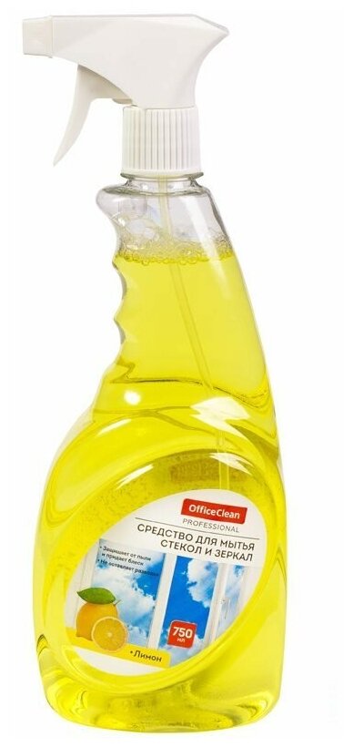 Купить Средство для мытья стекол и зеркал OfficeClean "Лимон", флакон с распылителем, 750мл (280767)