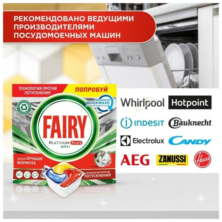 Средство для мытья посуды, FAIRY Platinum Plus All in, для посудомоечных машин, Лимон, 40 шт Fairy 6 .