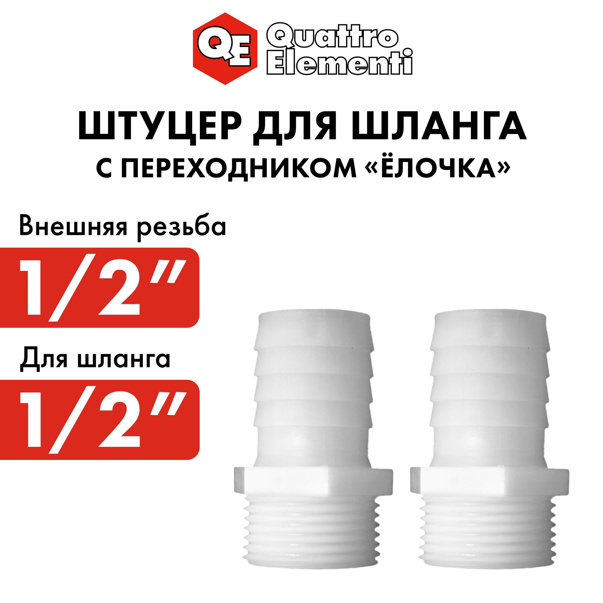 Купить Штуцер для шланга QUATTRO ELEMENTI внеш. резьба 1/2" - "ёлочка" 12 мм, 2шт, пластик