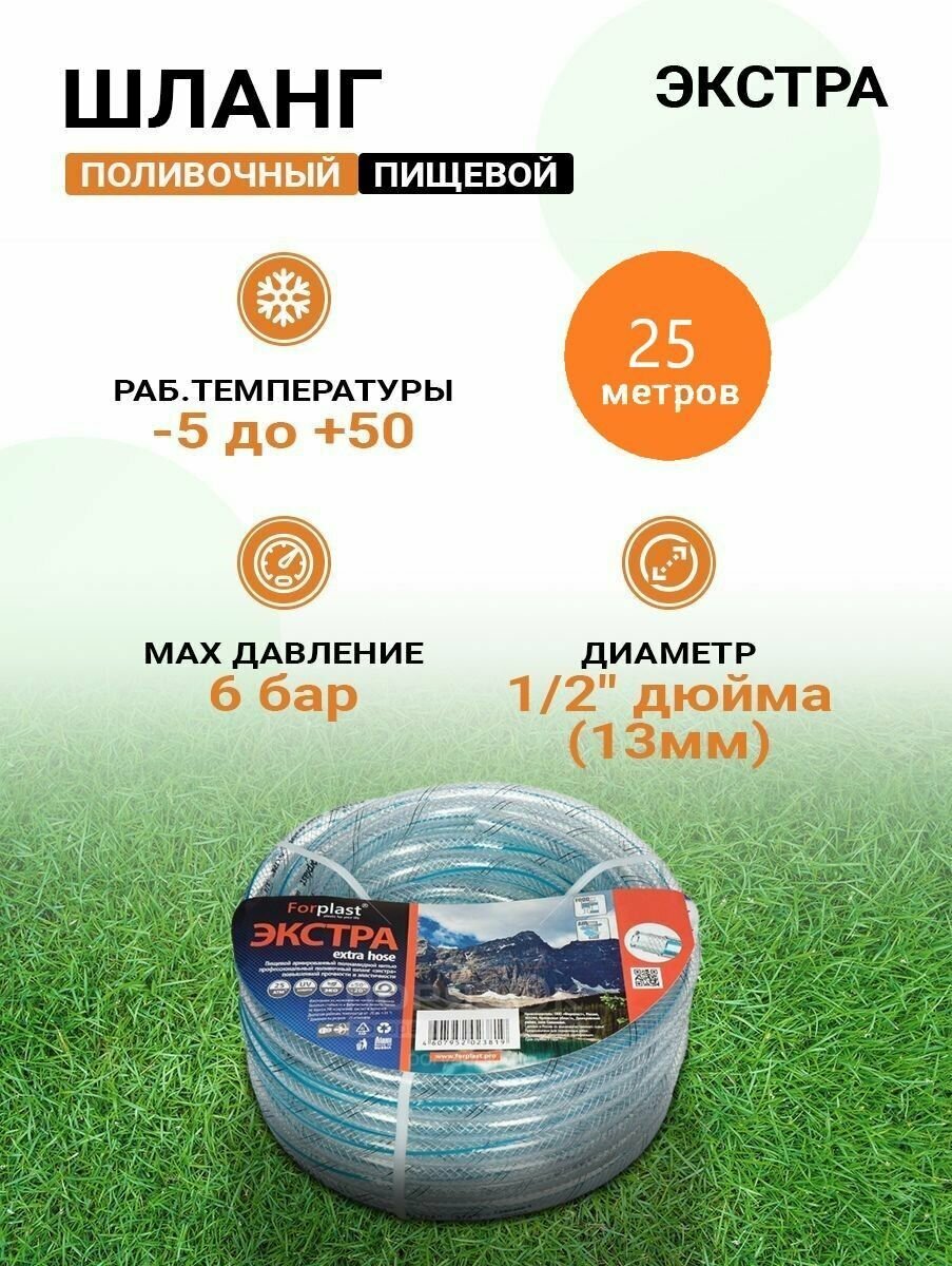 Шланг Forplast Экстра 1/2" 25 метров голубой/бесцветный интересное: