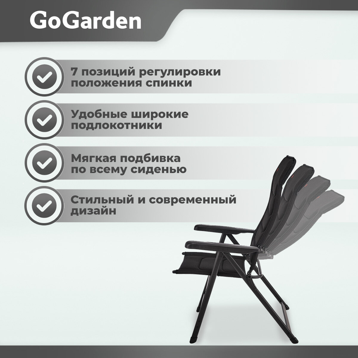 Кресло складное GoGarden ELEGANT, 7 позиций, 48,5х42х121 см, алюм., цвет черный