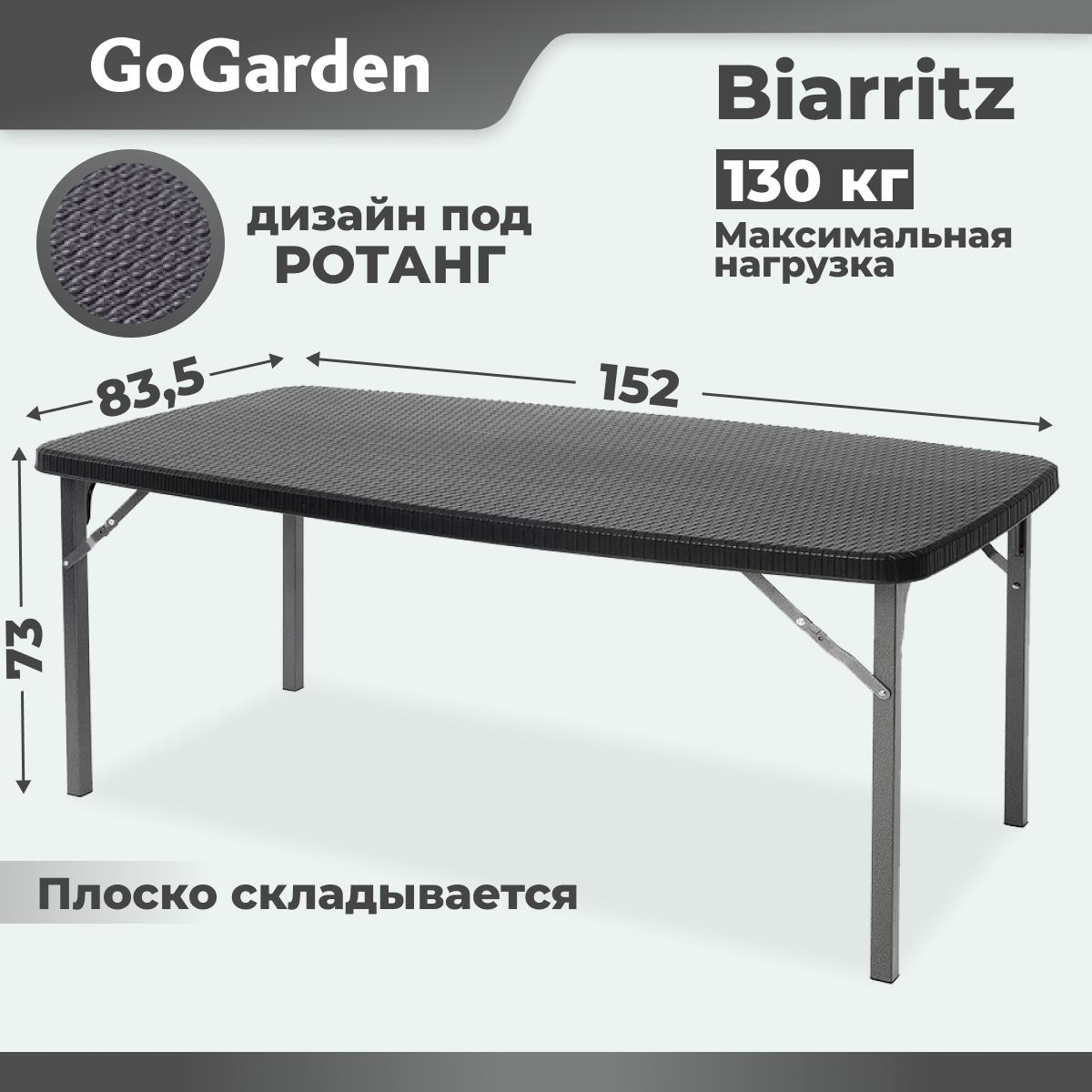 Стол складной Gogarden BIARRITZ садовый, 152х83,5х73 см, пластик/сталь