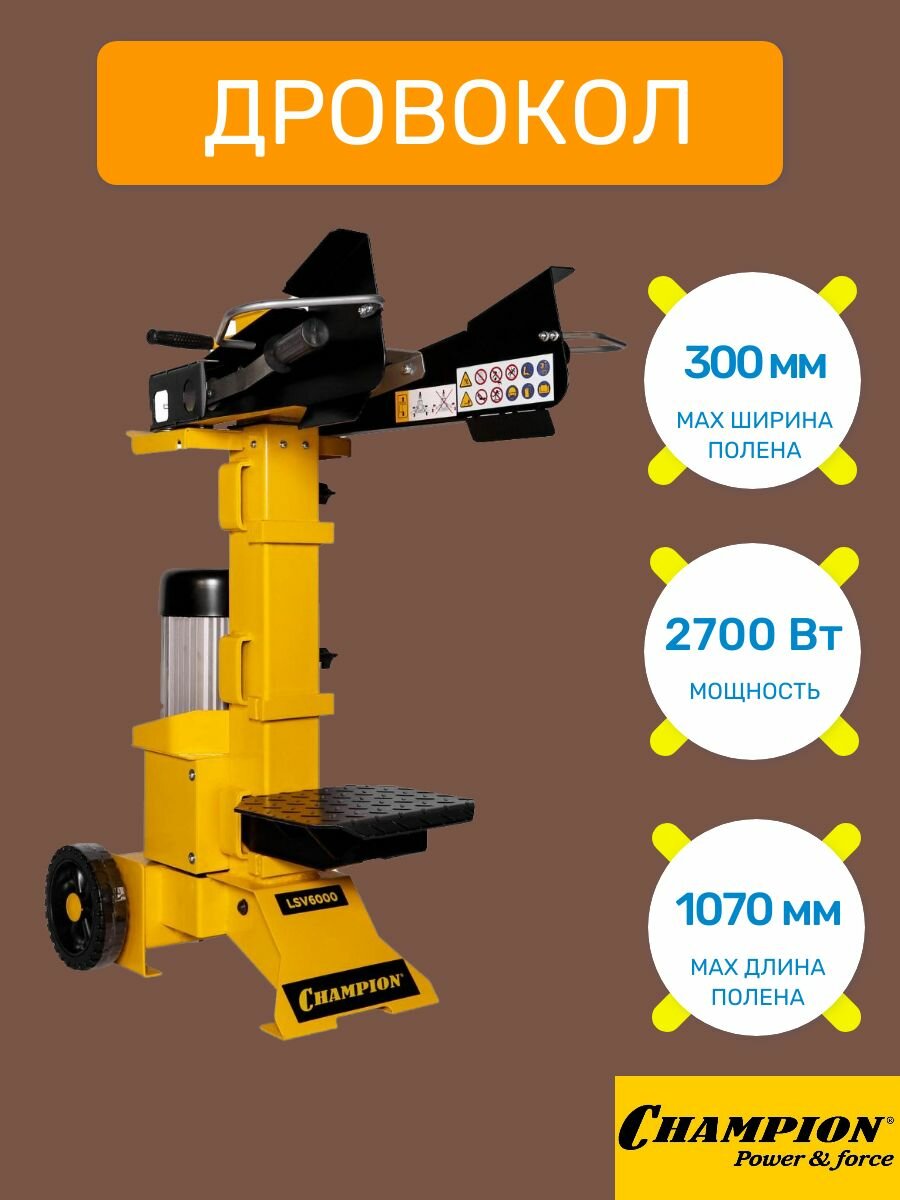 Дровокол CHAMPION, 2700 Вт, 1070 мм, LSV6000