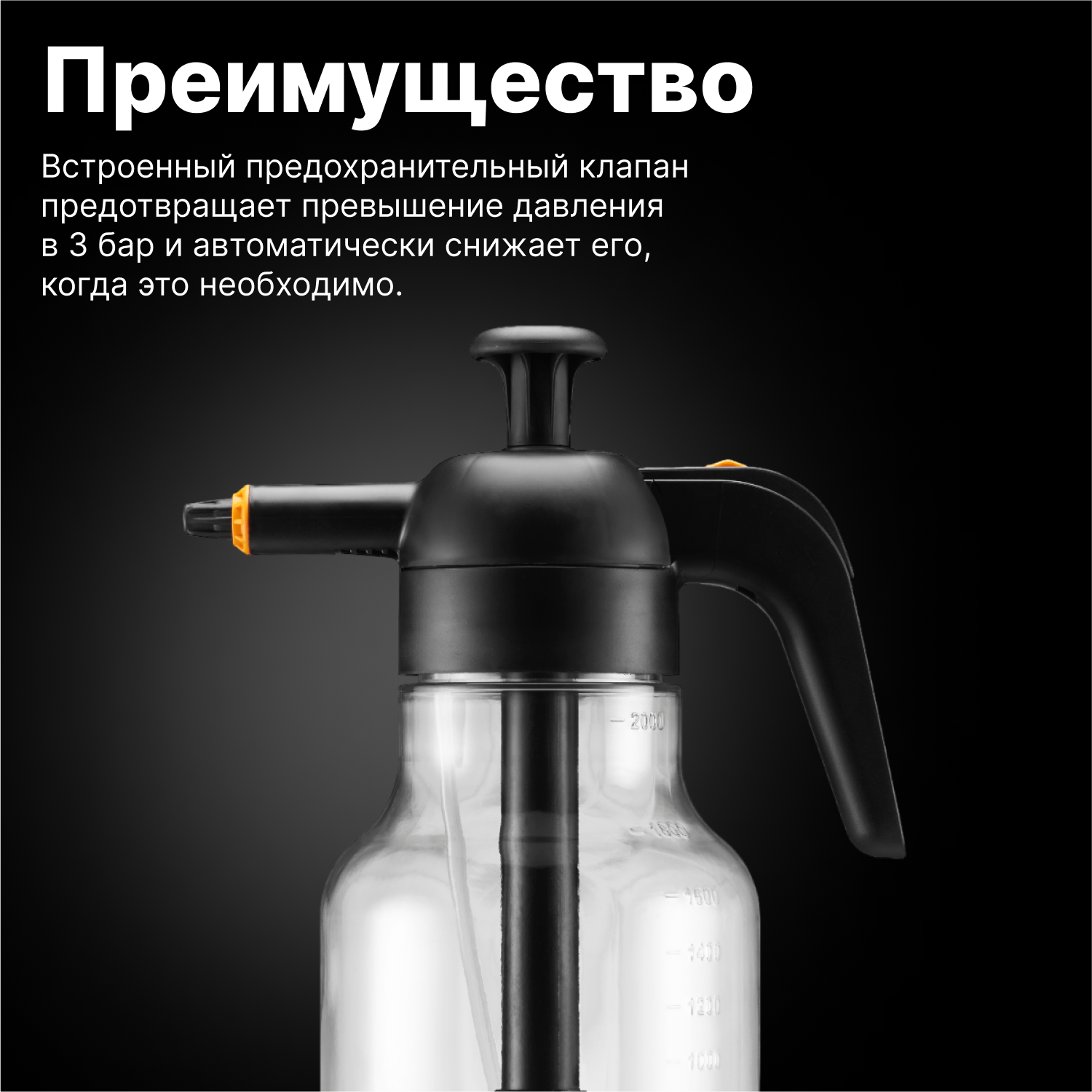 | Плюсы: | Красивый, с прозрачной колбой, хороший пластик. В руке лежит удобно. Удобный сброс давления. Перекачать не даёт. Нет металлических частей, что исключает ржавчину. Есть предохранитель. Легкий. При использовании, практически 2-3 раза в неделю, достаточно живуч. Заявленная гарантия 2 года. |