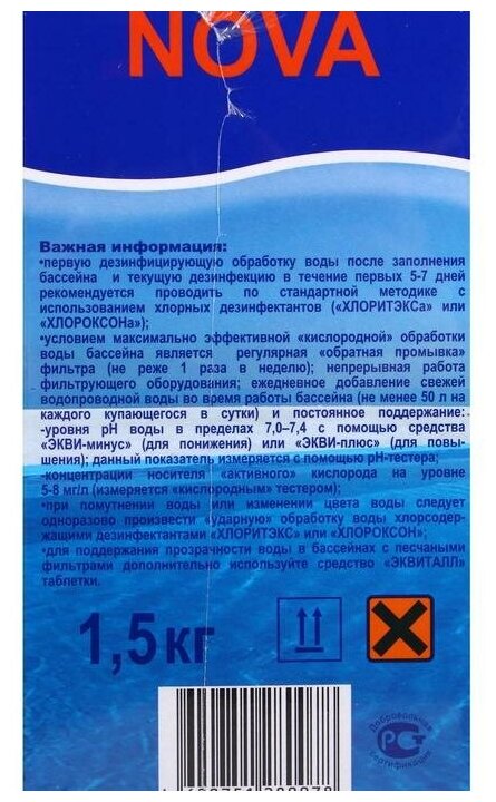 Активный кислород окситест Нова (1,5кг): Средство против водорослей для бассейна. Маркопул Кемиклс