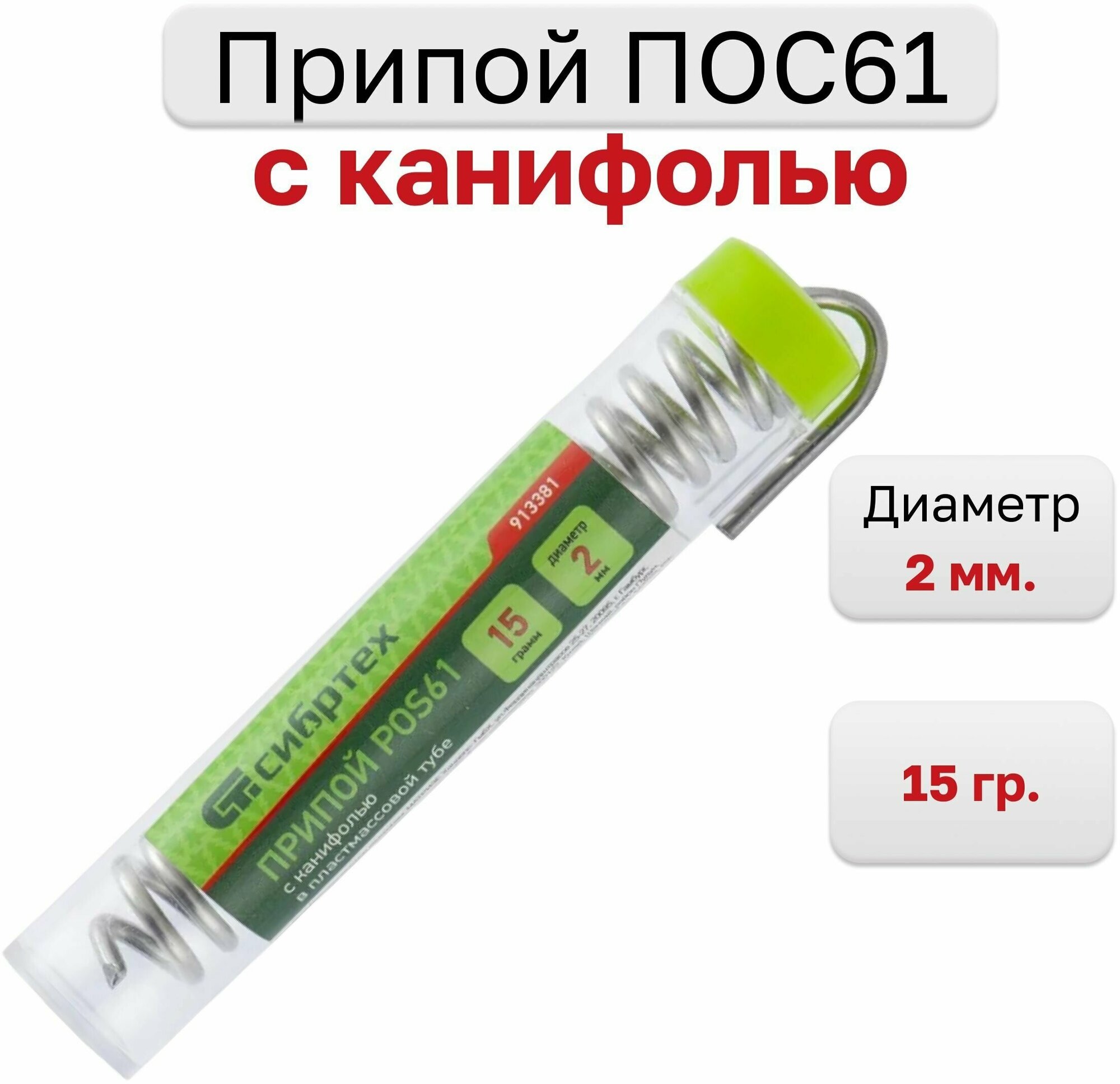 Припой с канифолью СИБРТЕХ 913381, D 2 мм, 15 г, POS61, в пластмассовой тубе интересное: