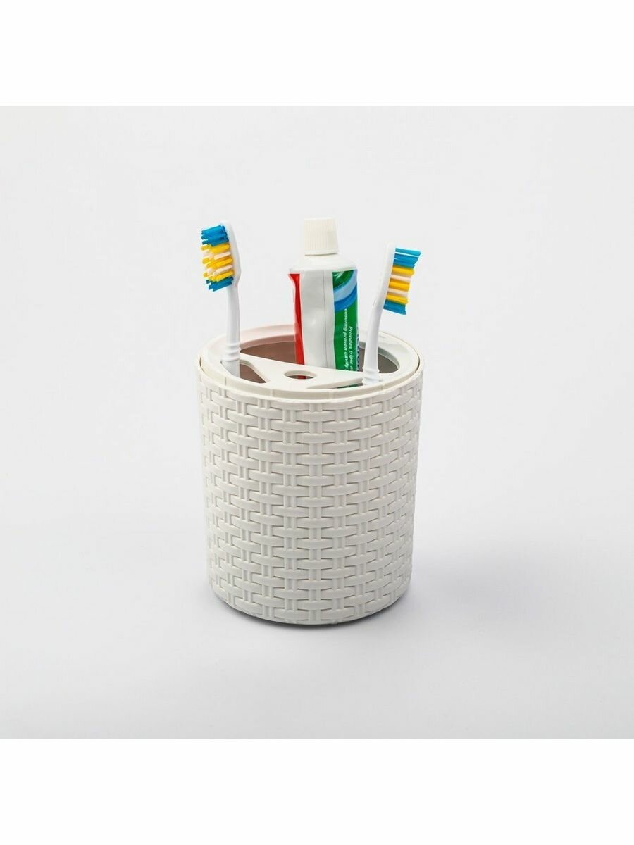 Подставка для зубных щеток и пасты, держатель для ванной, стакан для хранения зубной щетки Альтернатива Плетенка, слоновая кость
