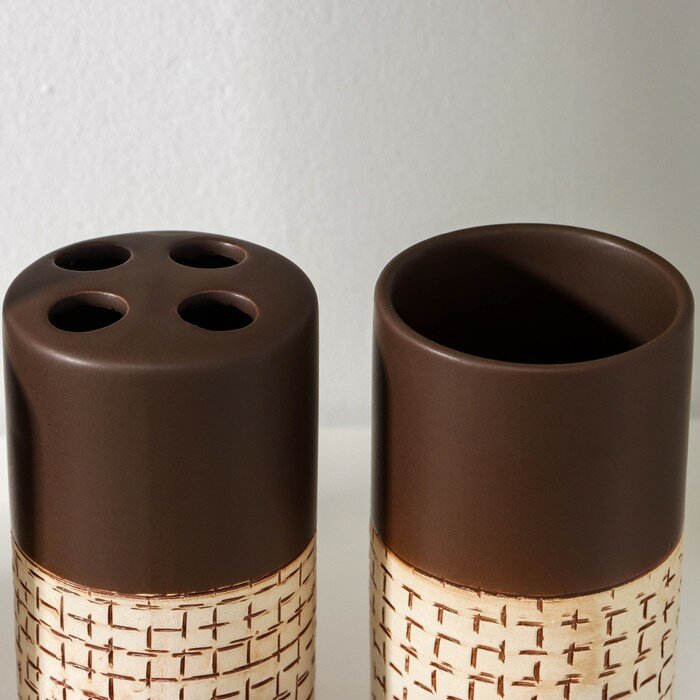Купить Доляна Набор аксессуаров для ванной комнаты Доляна «Кофе с молоком», 4 предмета (дозатор 300 мл, мыльница, 2 стакана)