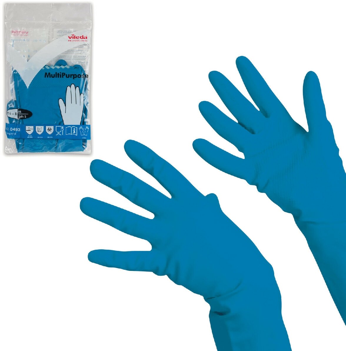 Купить Перчатки латексные Vileda MultiPurpose, синие, размер 8 (М), 1 пара (100753)