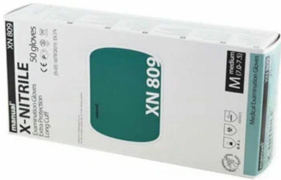 Перчатки медицинские смотровые Manual XN 809 нитриловые зеленые (размер M, 50 штук/25 пар в упаковке)