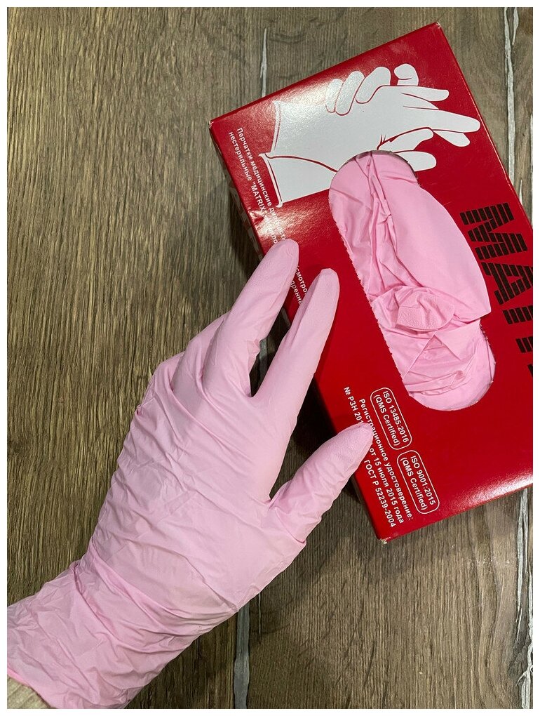 СохранитьПерчатки нитриловые MATRIX Pink Nitrile, цвет: розовый, размер: M, 100 шт. (50 пар), 7.7 грамм нитрила - пара интересное: