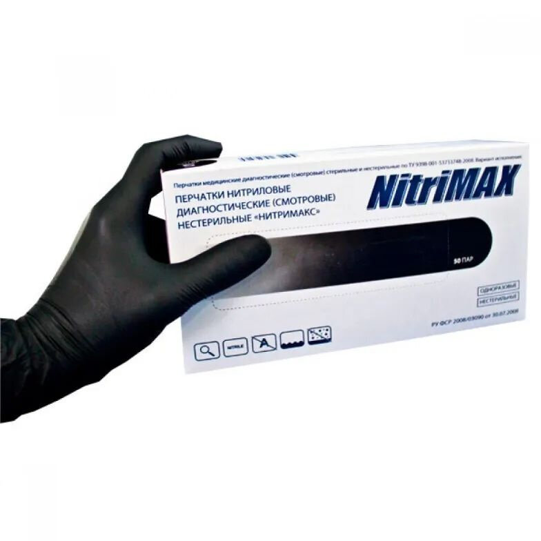 Ниже Вы можете прочитать отзывы на Перчатки одноразовые нитриловые смотровые NitriMax, нестерильные, неопудренные, черные, размер L, 50 пар в упаковке, ознакомится с подробными характеристиками, посмотреть интересные обзоры и фотографии на Перчатки одноразовые нитриловые смотровые NitriMax, нестерильные, неопудренные, черные, размер L, 50 пар в упаковке.