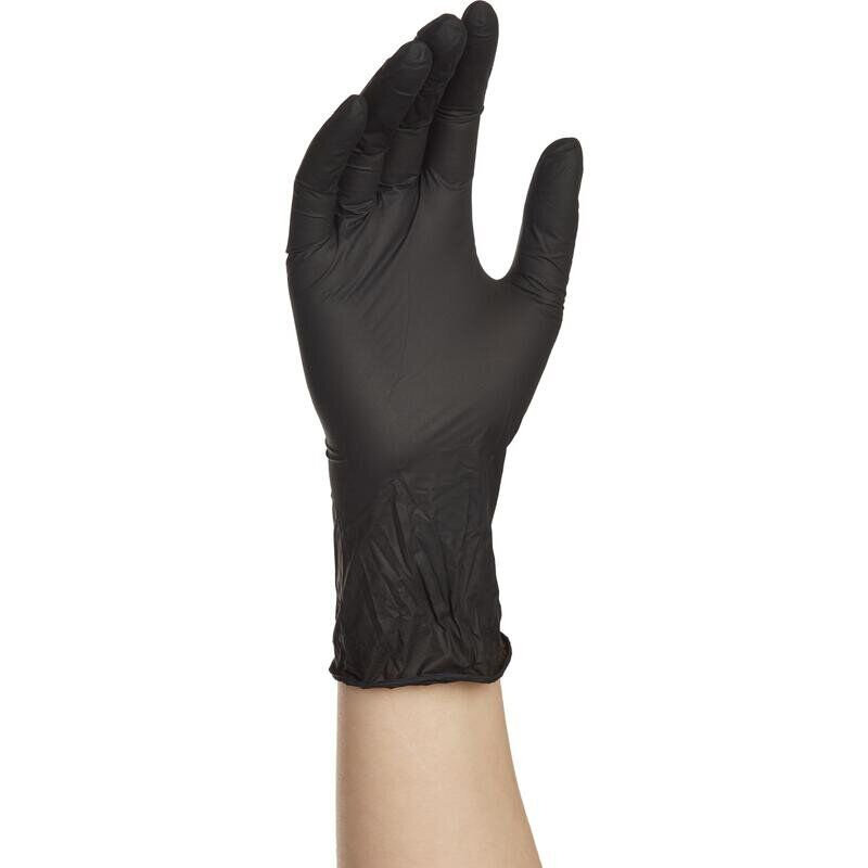 Перчатки медицинские смотровые нитриловые NitriMax текстурированные нестерильные неопудренные размер XL 9-10 черные 50 пар/100 штук в упаковке, 1324979
