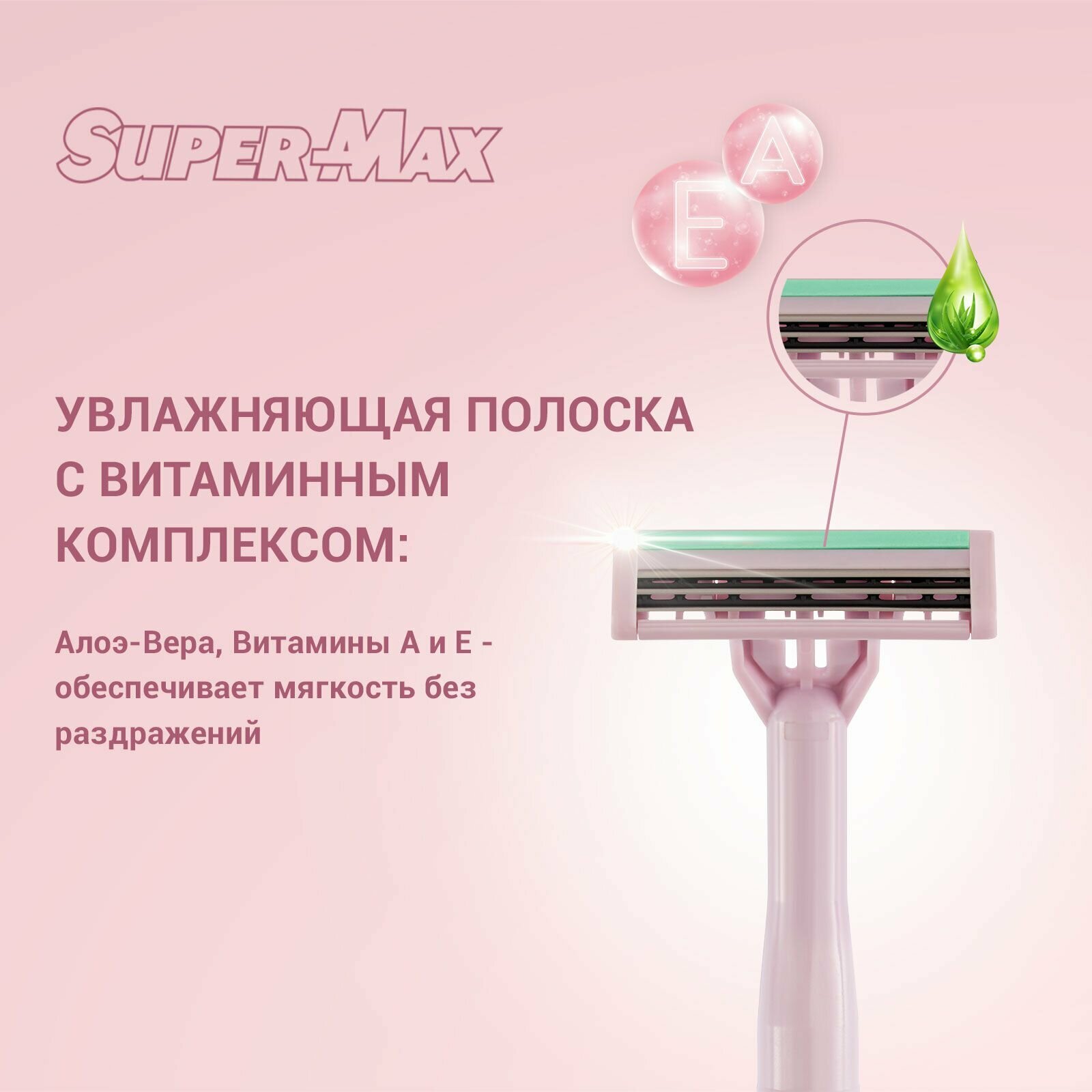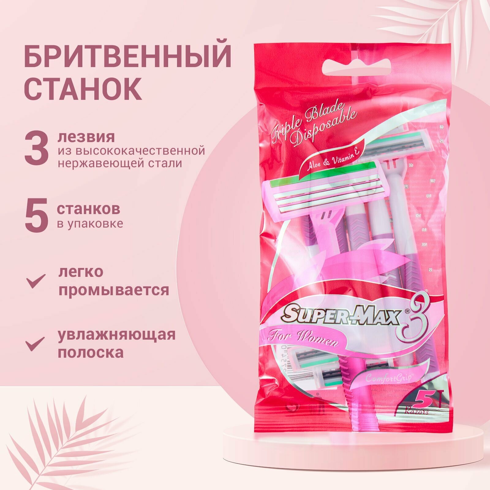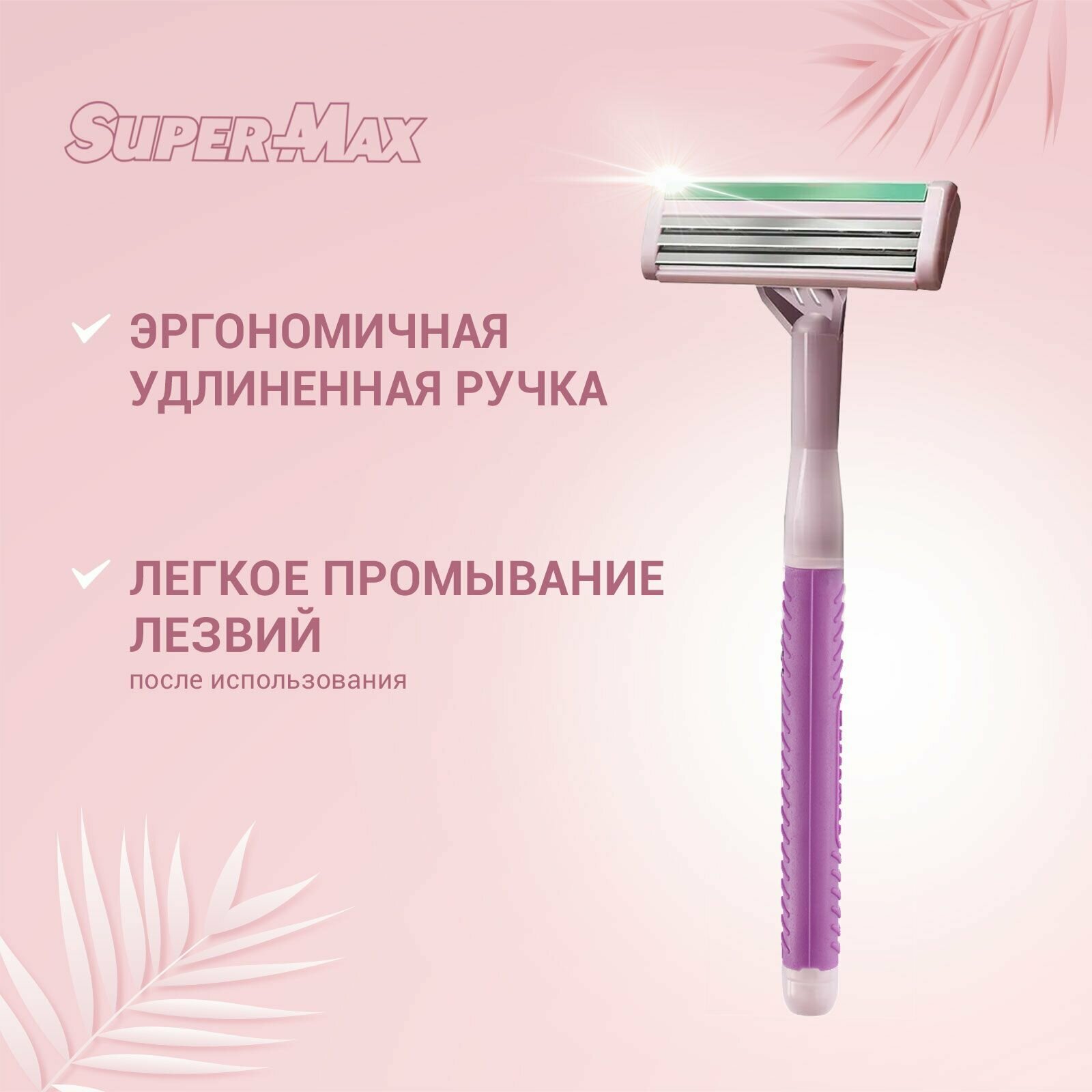 Одноразовые станки женские SUPER-MAX 3 for Women, с тройным лезвием, 5 шт в упаковке