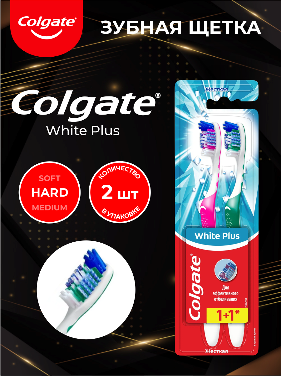 Купить COLGATE Отбеливающая Plus зубная щетка, жесткая, промоупаковка 1+1