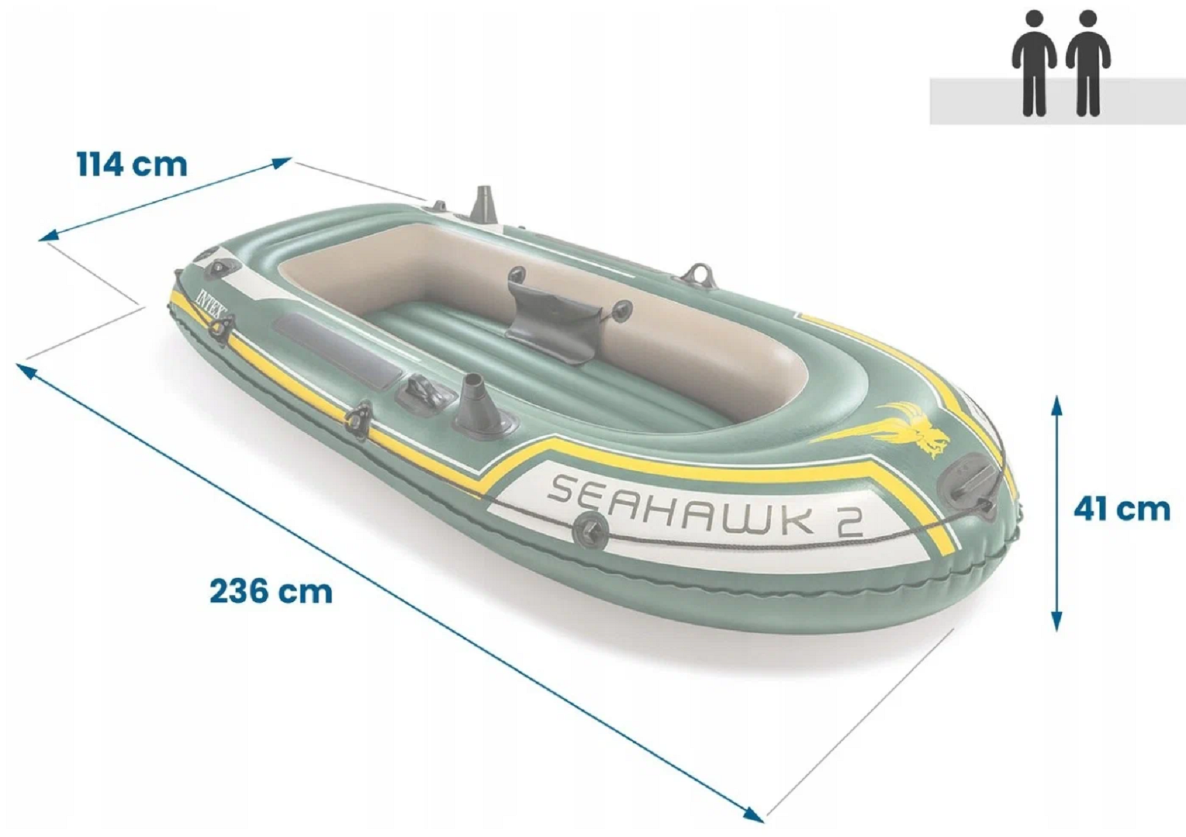 Лодка надувная 236х114х41 см, 2х-местная, 240 кг, весла, насос ручной, креплен под транец, Intex, SeaHawk, 68347NP