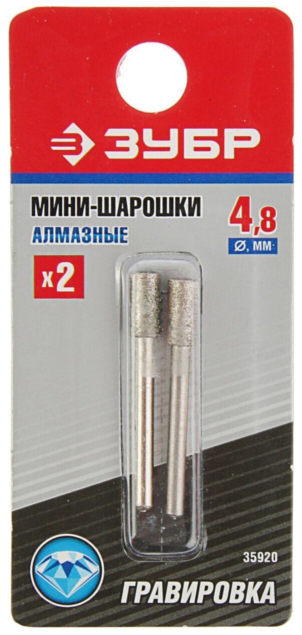 Мини-шарошки ЗУБР алмазные, d 4,8x10,0х3,2мм; L 38мм, 2шт