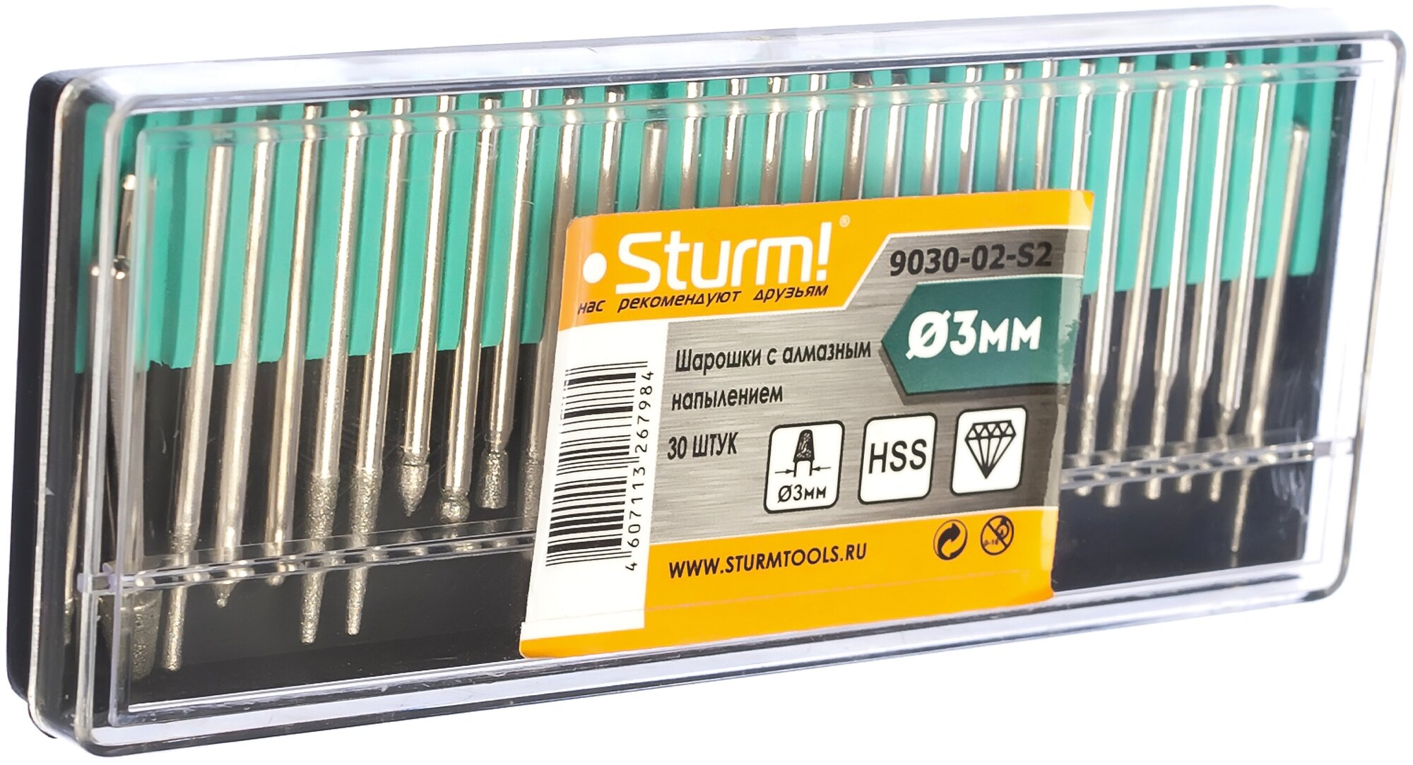 Набор шарошек STURM! 9030-02-S2, 30шт, хвостовик 3мм, алмазное напыление