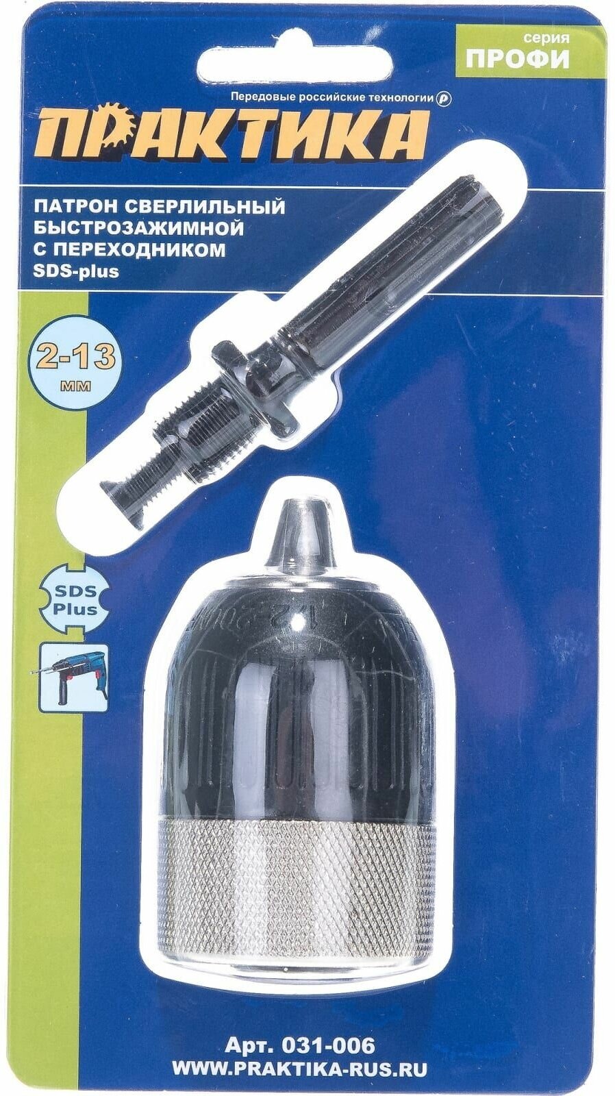 Патрон быстрозажимной с адаптером SDS+ ПРАКТИКА 13 мм, 1/2"-20UNF (1шт.) блистер (031-006)