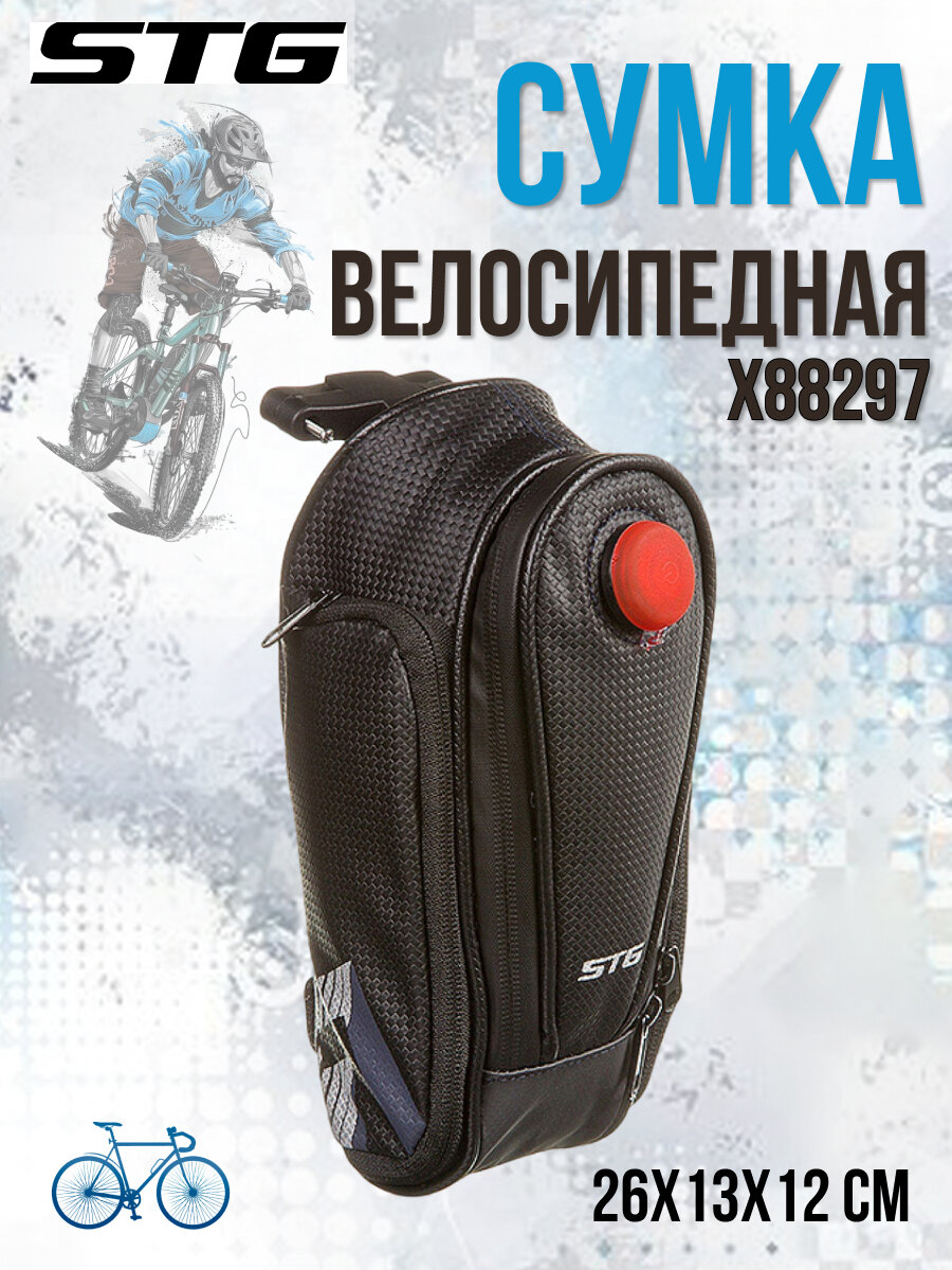 STG Велосумка мод.31397 под седло , с красным фонарем сзади,2-а отделение,черная. Х88297 127271