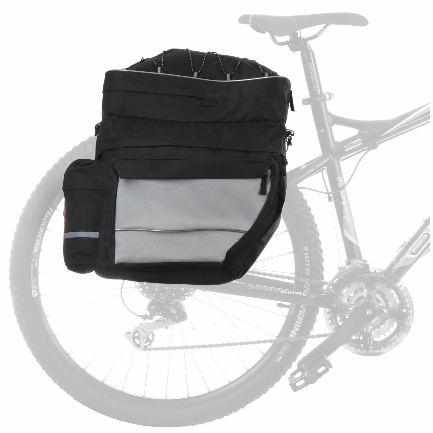 | Минусы: | Крепления расположены под сумкой, неудобно лезть. Вес надо распределить равномерно между двумя боками, иначе велосипед будет протирать ткань спицами |