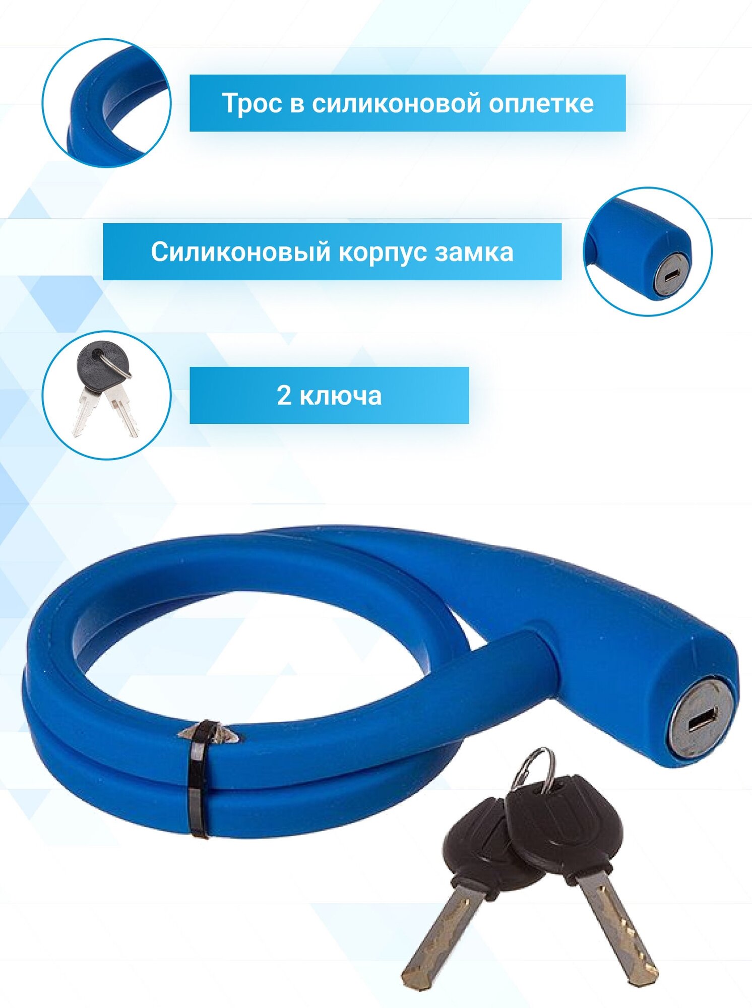 Замок STG TY4538, трос ,на ключе, диам.12х60см, силикон. Оплетка, синий