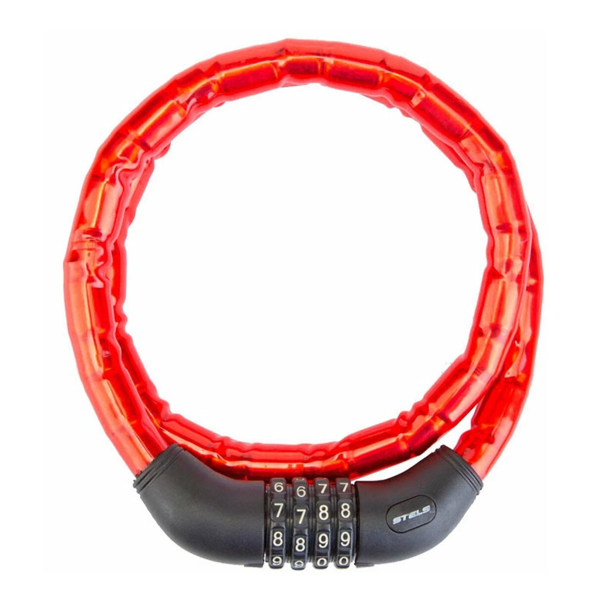 Замок-трос Stels 81601 с шифром стальными звеньями 18*1000мм красный