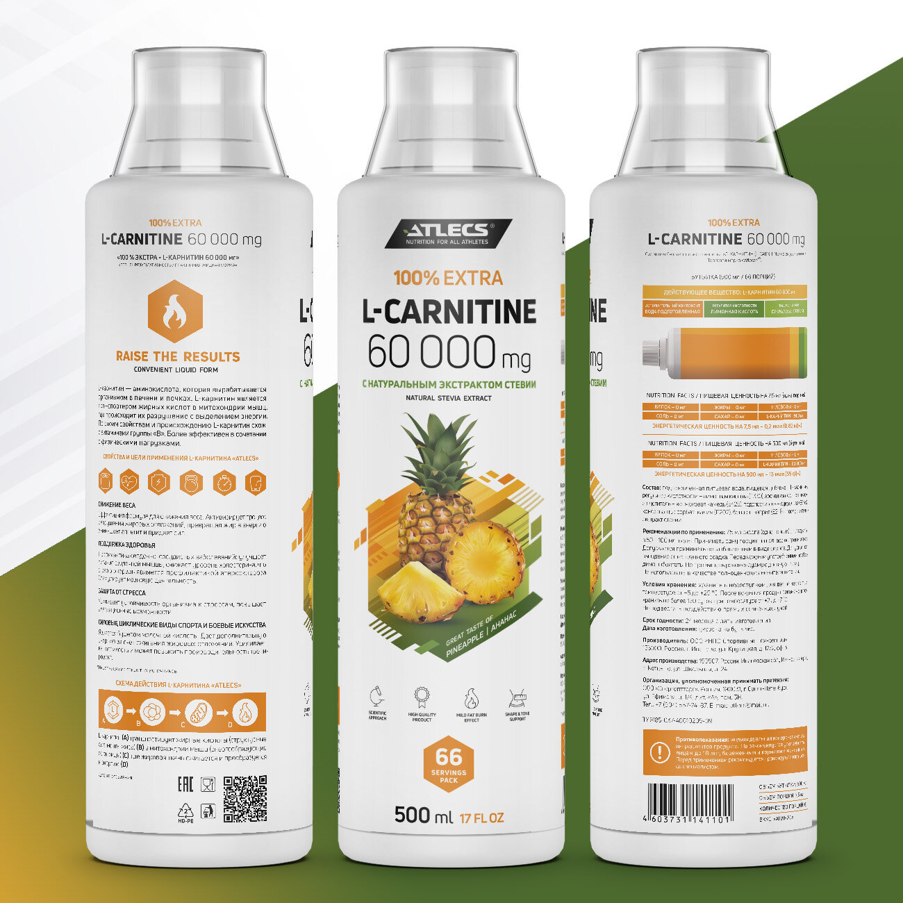 Atlecs L-carnitine 60000 mg, 500 мл. (ананас) интересное: