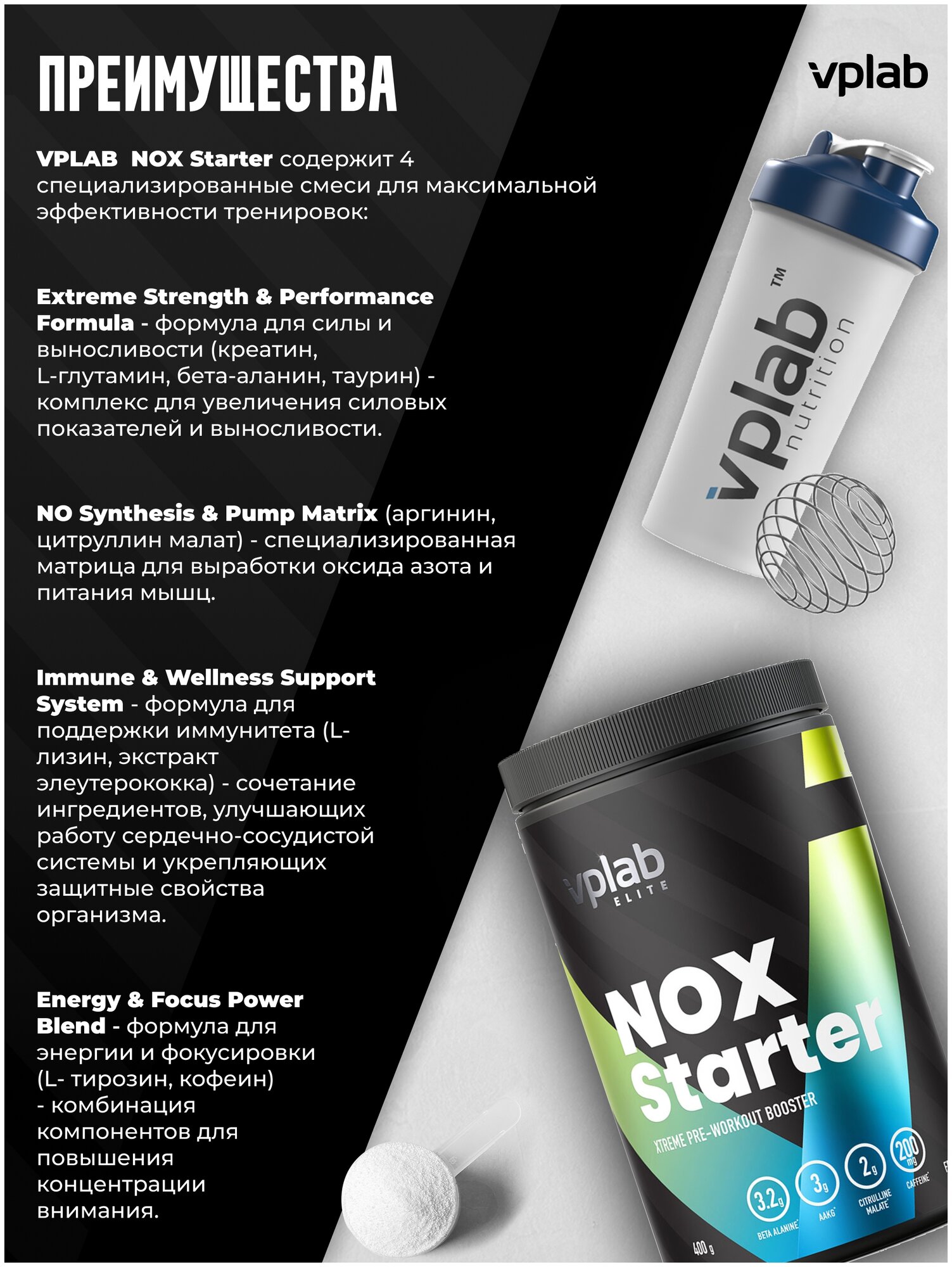 Предтренировочный комплекс vplab NOX Starter (400 г) фруктовый пунш интересное: