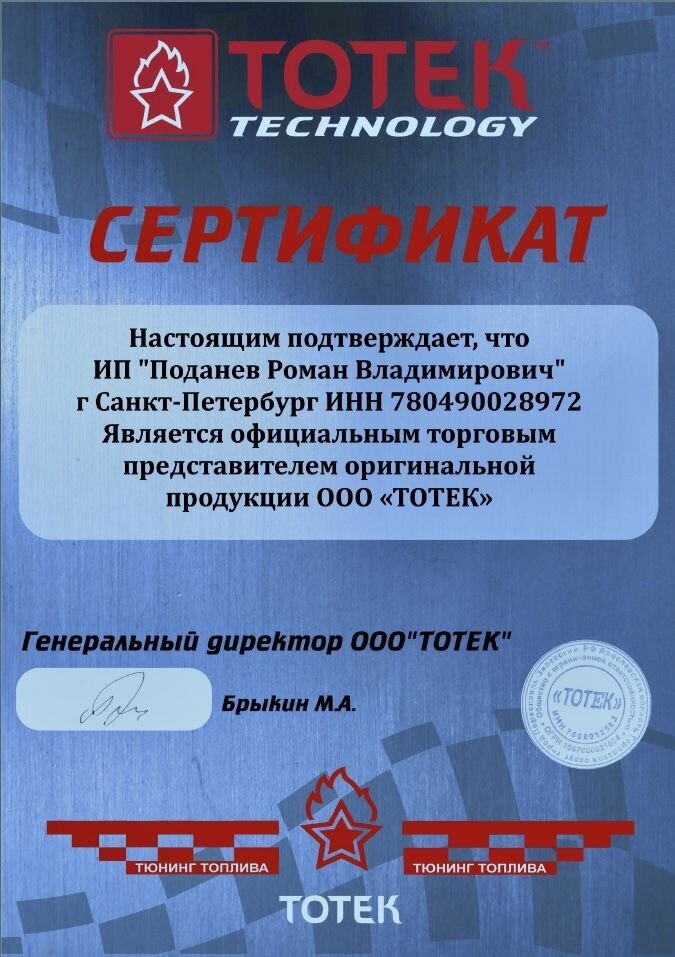 | Отзыв: | Пользуюсь периодически различными присадками для дизеля. Двигатель уже не новый и обычно эффект от присадок ощущается как в динамике автомобиля, так и по расходу. Тут же Тотек не дал вообще никакого эффекта. |