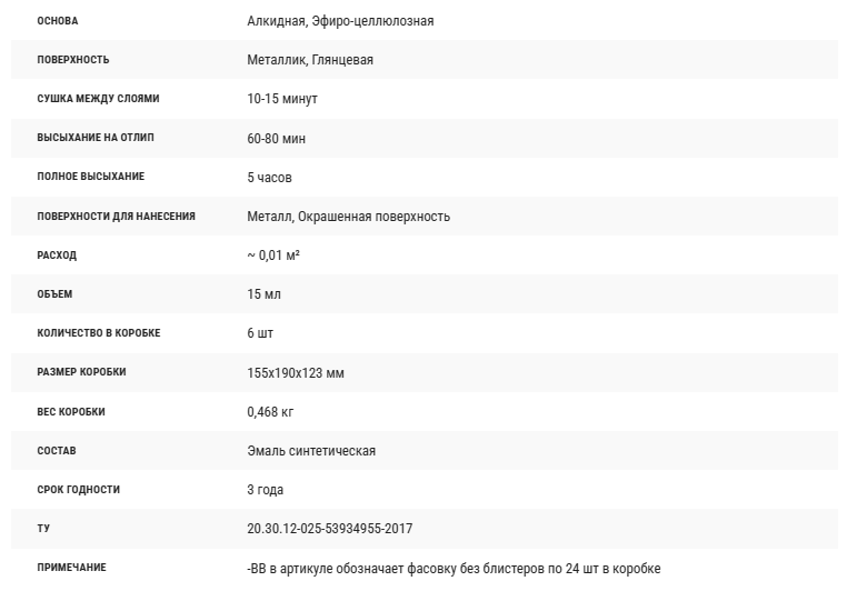 | Число компонентов автоэмали | однокомпонентная |