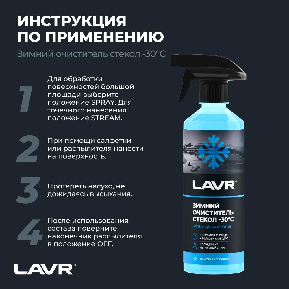 Очиститель стекол зимний (-30C) с триггером LAVR Glass cleaner winter 500мл