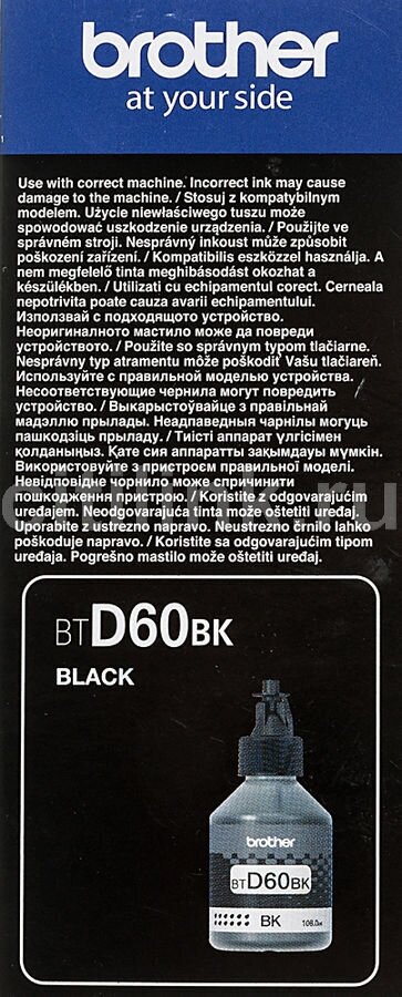 Чернила Brother BT-D60BK (BTD60BK), черный, оригинальные для Brother DCPT310/510W/710W