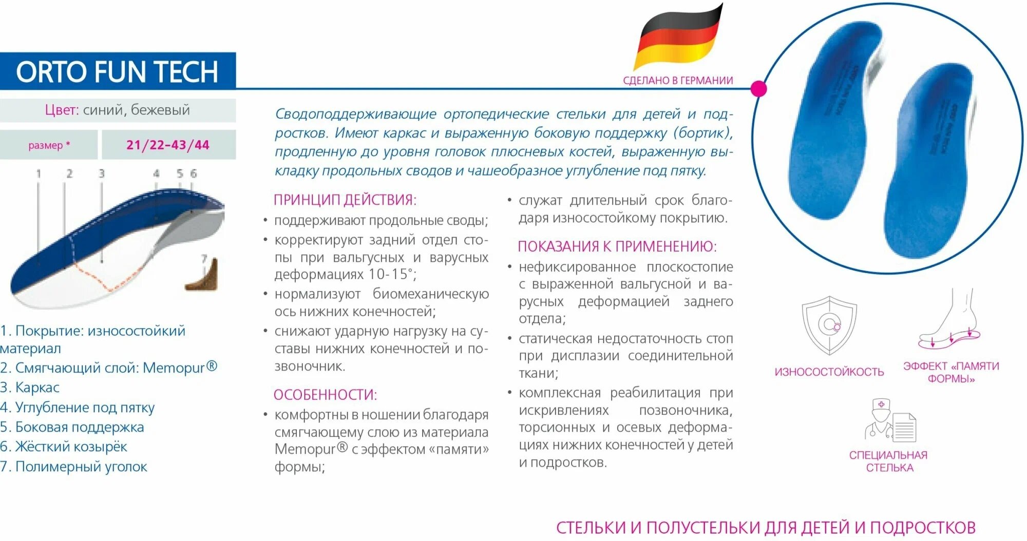 СохранитьСтельки ортопедические Orto Fun Tech для детей, Размер 41/42, Синий интересное: