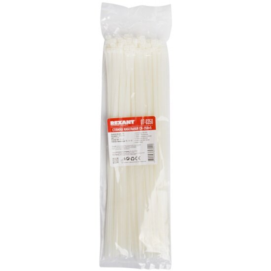 Rexant Хомут-стяжка кабельная нейлоновая REXANT 350 x4,8 мм, белая, упаковка 100 шт.
