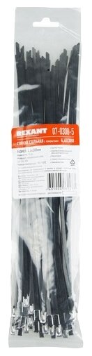 Хомут-стяжка Rexant, сталь с полимерным покрытием, 4,6 x 300 мм, 50 шт, черный