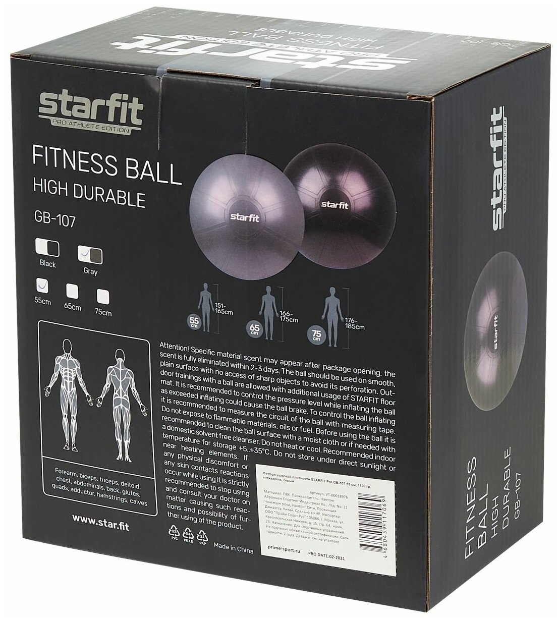 Фитбол высокой плотности StarFit Pro GB-107 антивзрыв, 1100 гр, серый, 55 см интересное: