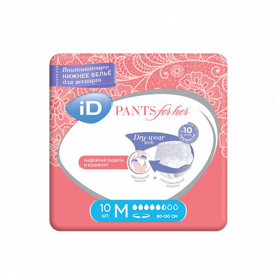 iD Pants For Her / АйДи Пэнтс Фор Хёр - впитывающие трусы для женщин, M, 10 шт.
