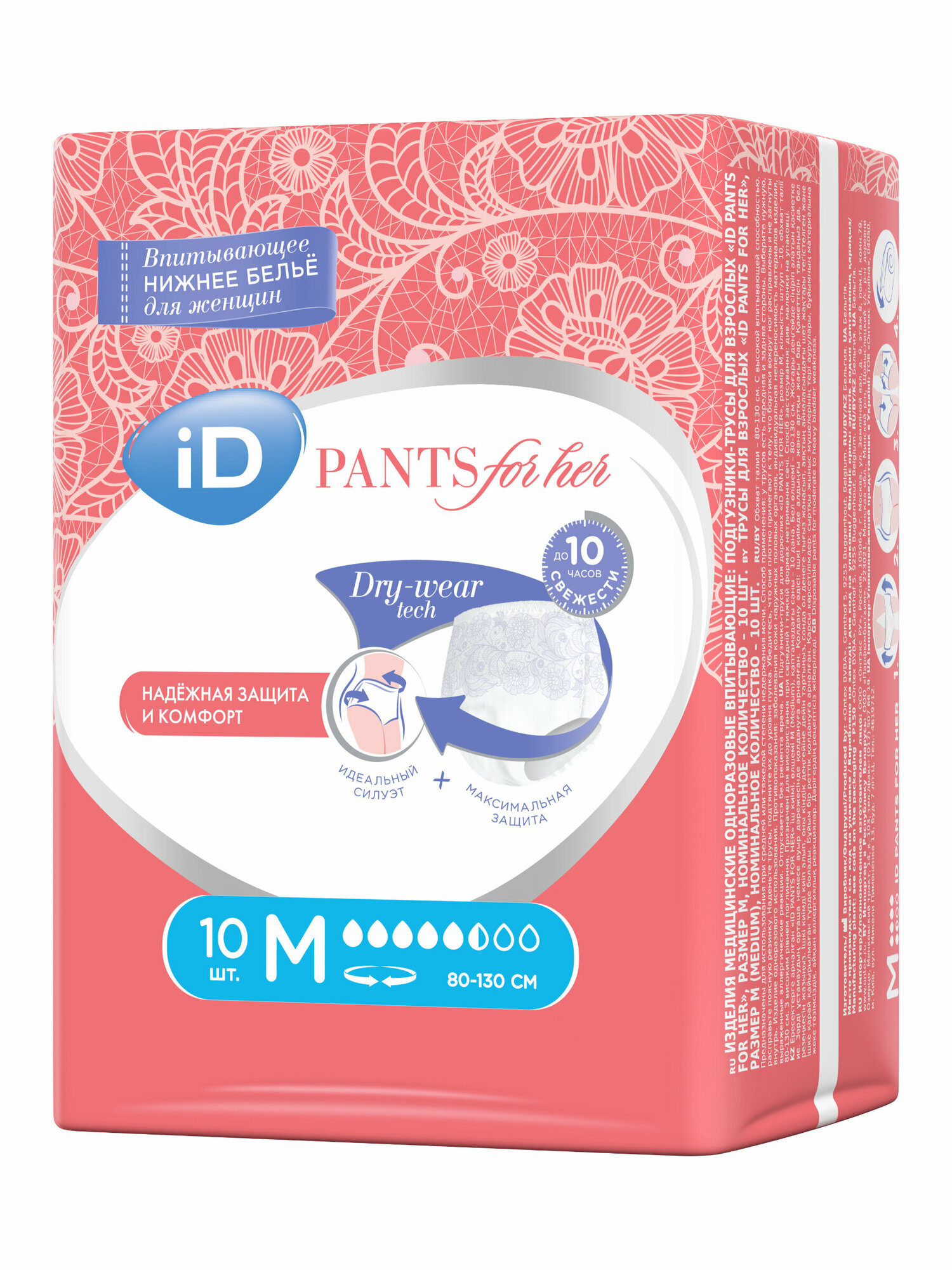 iD Pants For Her / АйДи Пэнтс Фор Хёр - впитывающие трусы для женщин, M, 10 шт.