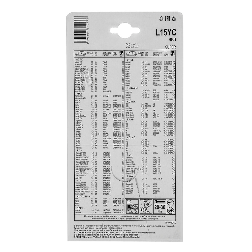 Свеча Зажигания Lada/Zaz/Renault (Блистер) (Мин. 4 Шт.) BRISK арт. L15YCJ