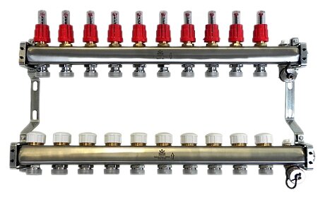 Коллекторный блок Gekon для тепл.пола 1"x3/4"EU отв.-10, с воздухоотводчиками и сливными клапанами интересное: