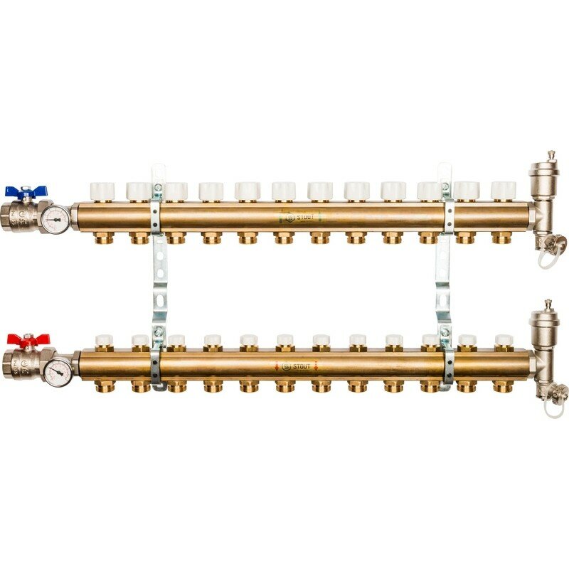 Коллекторная группа из латуни без расходомеров на 10 выходов STOUT (SMB 0468 000010)