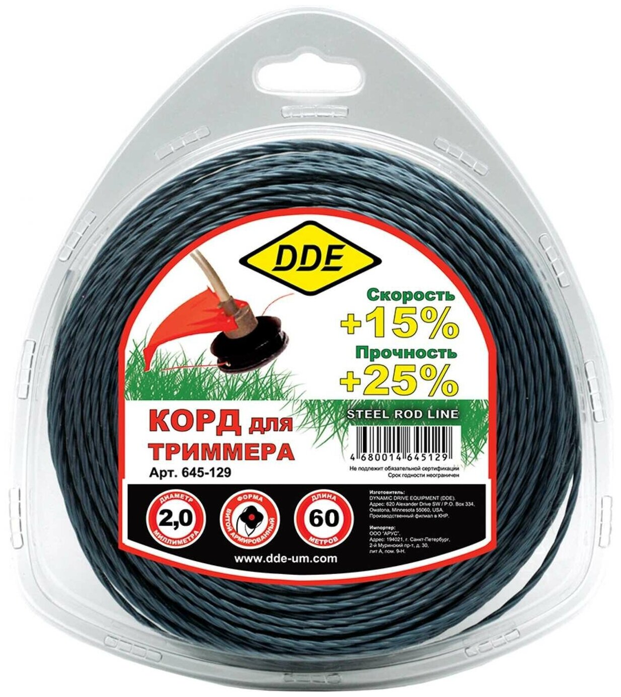 Купить DDE Корд тримм в блистере Steel rod line крест витой армированный 2,0 ммх63 м, 645-129 .