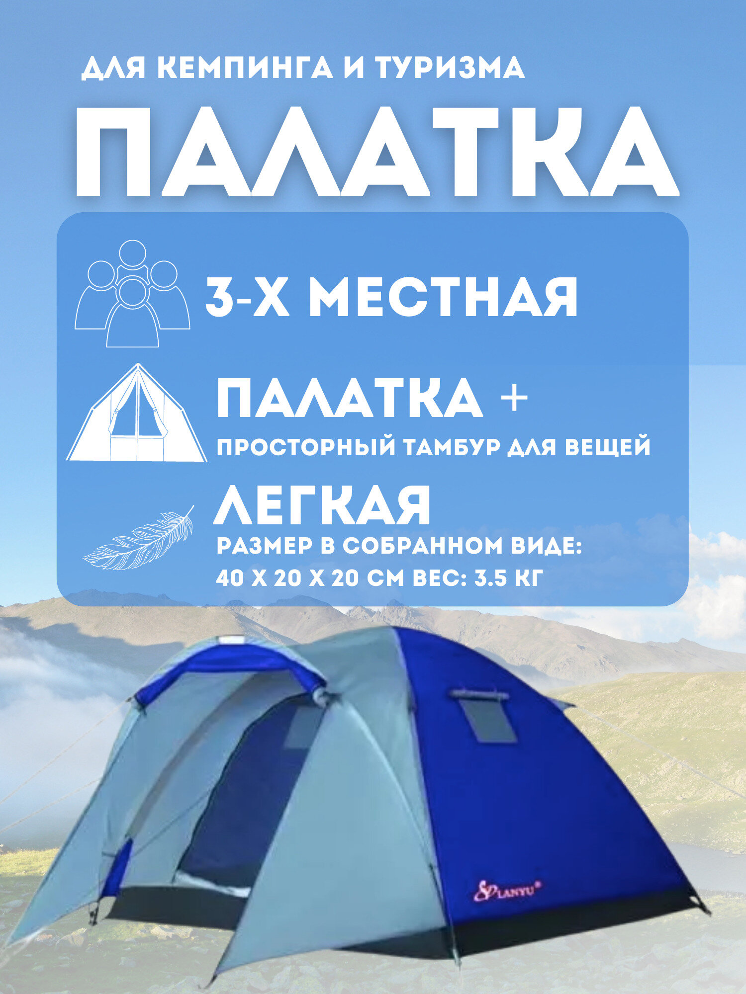 Палатка туристическая 3-хместная "Lanyu" LY-1637