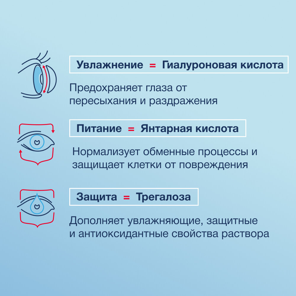 | Плюсы: | пользуюсь вторую неделю разницу от реню не увидел, линзы на ночь хранятся в растворе. раздражений нет, все ок. |