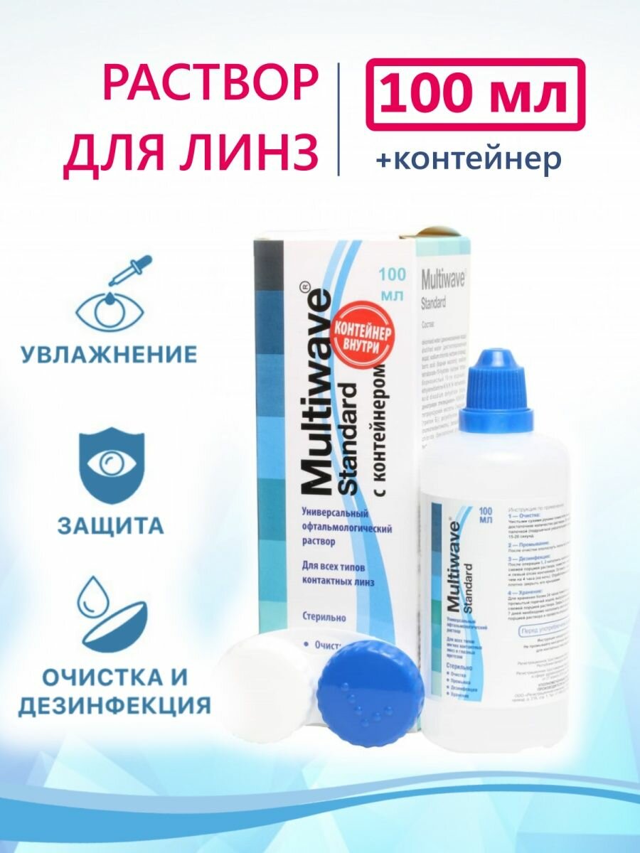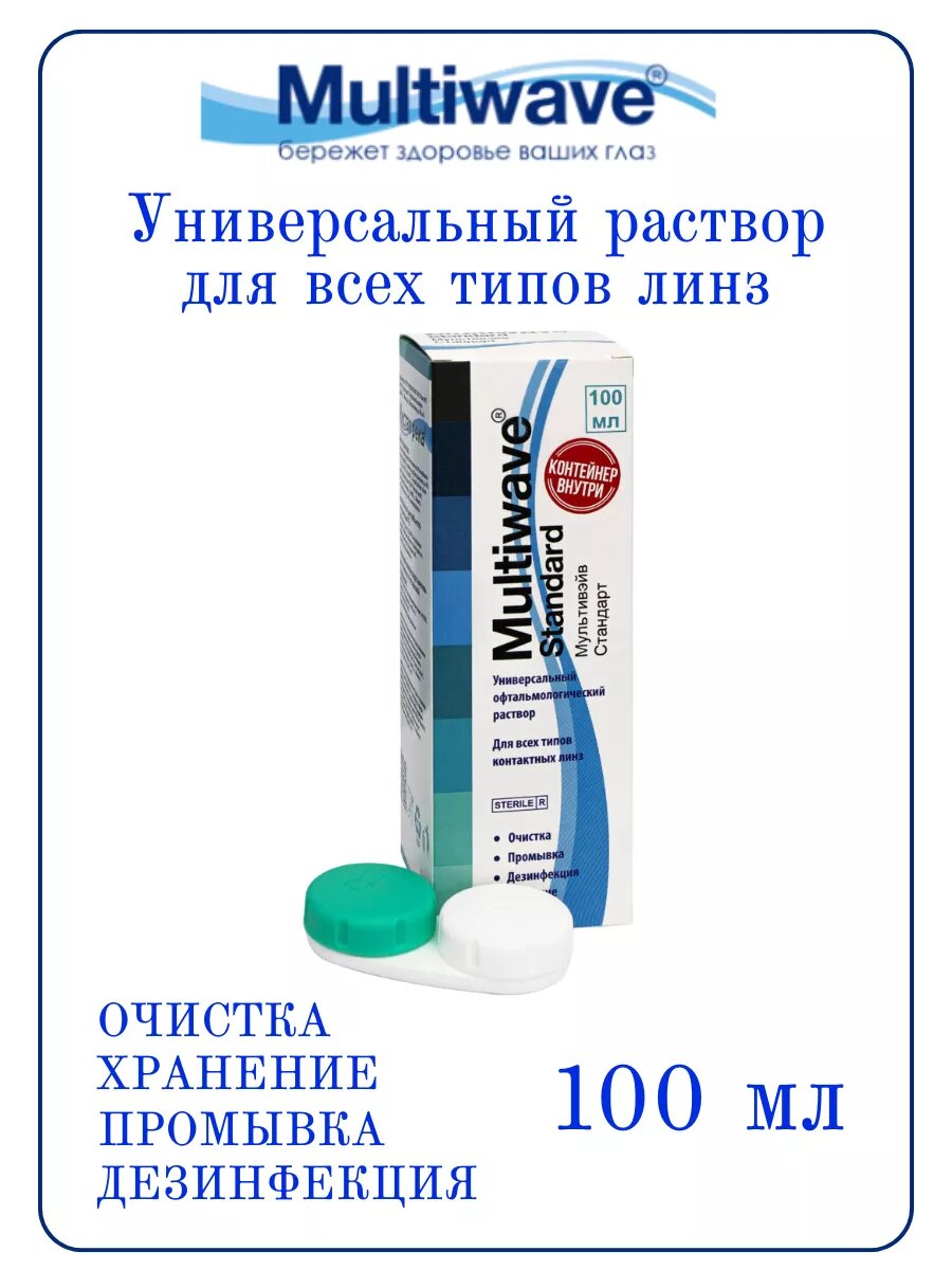 Раствор Multiwave Standart для ухода за контактными линзами с контейнером, 250 мл