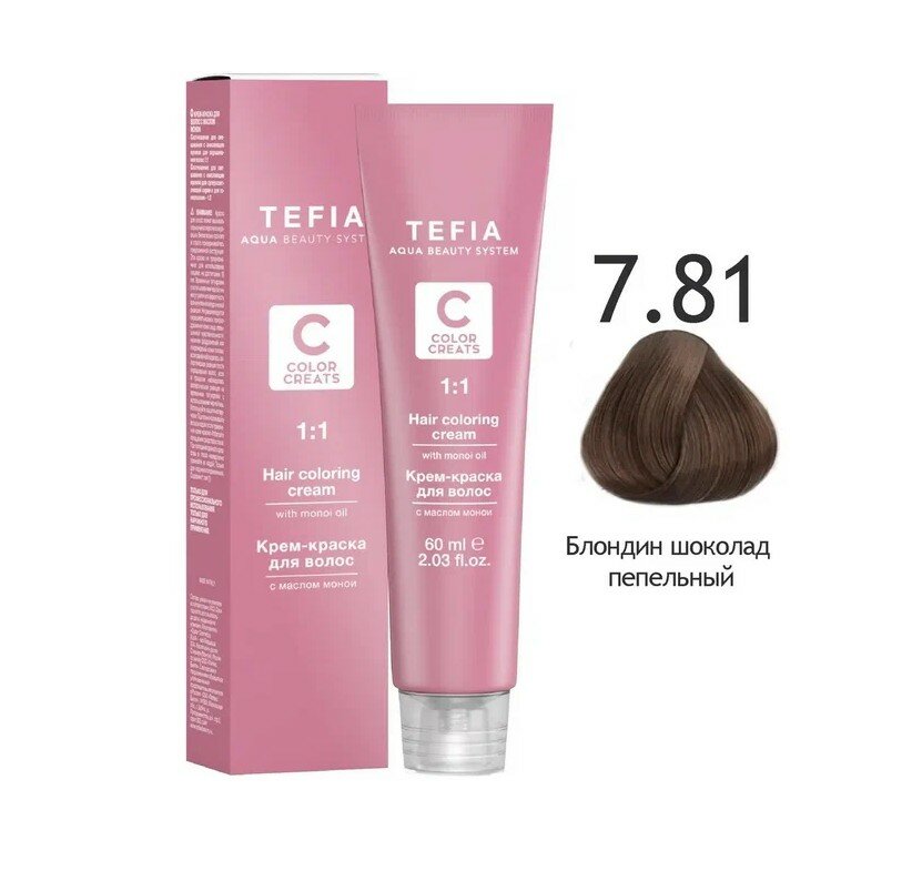 Купить TEFIA ABS Крем-краска для волос с маслом монои, 60 мл Блондин шоколад пепельный 7.81