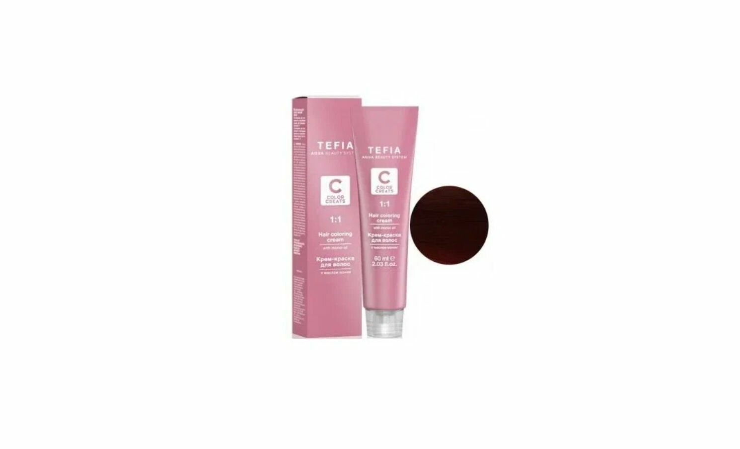 TEFIA ABS Крем-краска для волос с маслом монои, 60 мл 5.6 светлый брюнет красный махагоновый